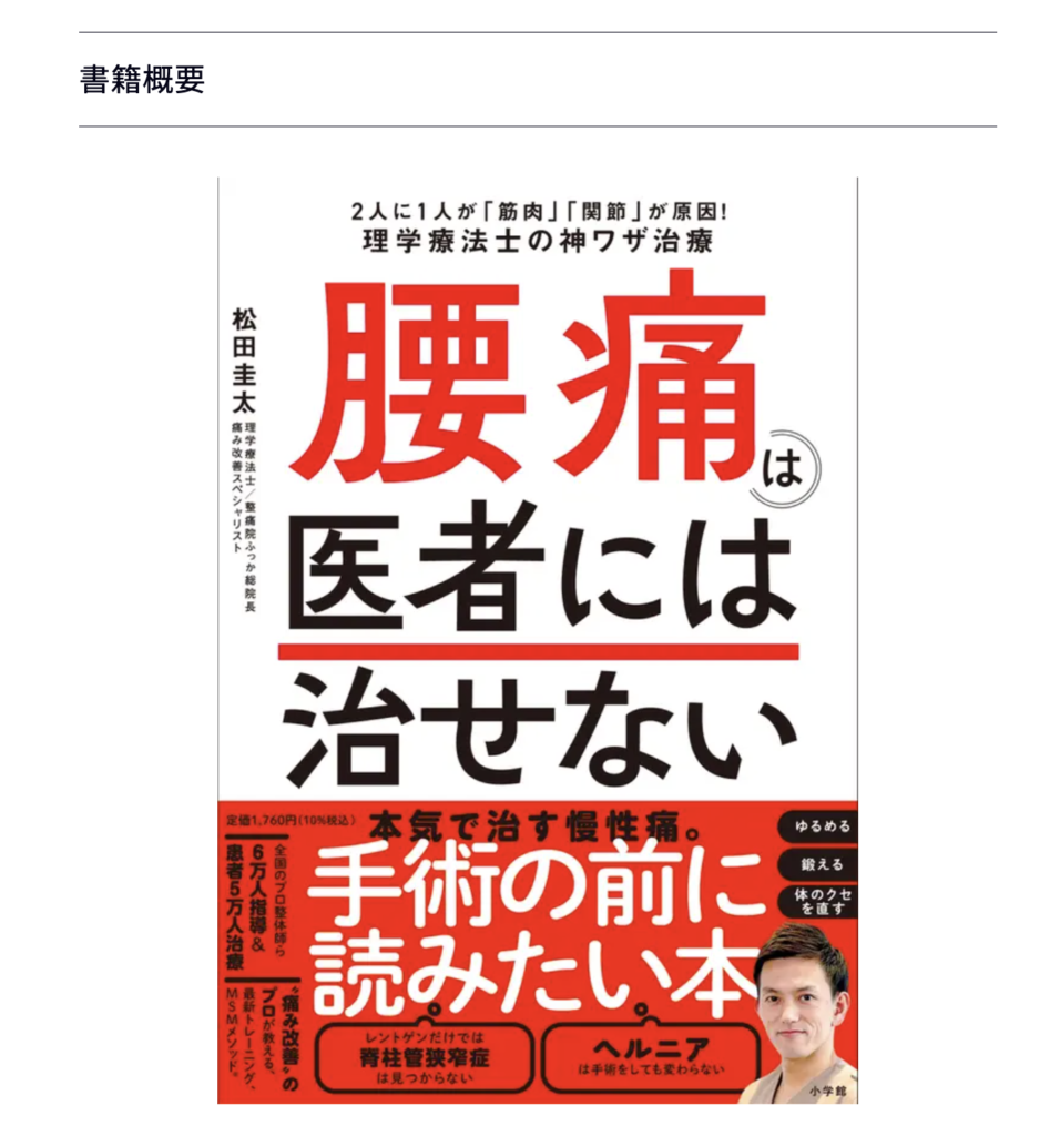 「腰痛が直らない」「レントゲンでも異常が見当たらない」と悩む方にとって、この本が腰痛から解放されるきっかけになれば幸いです。